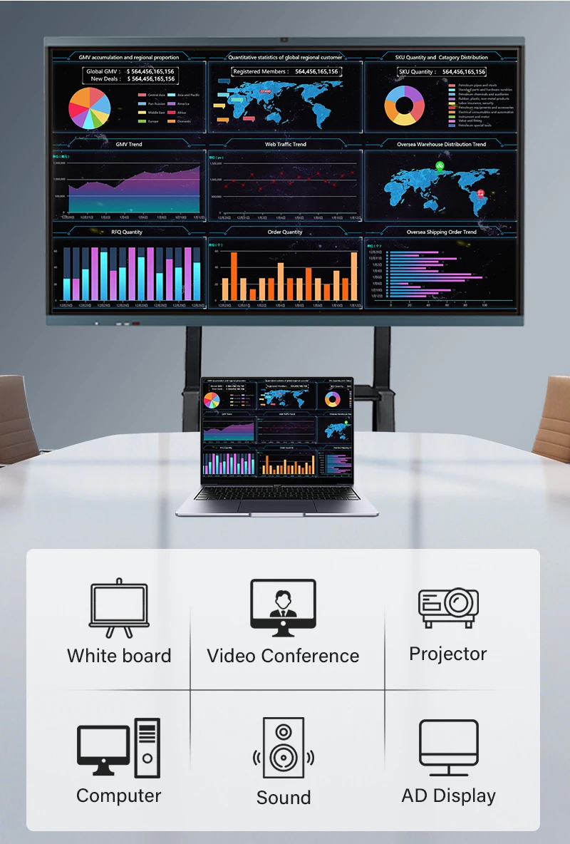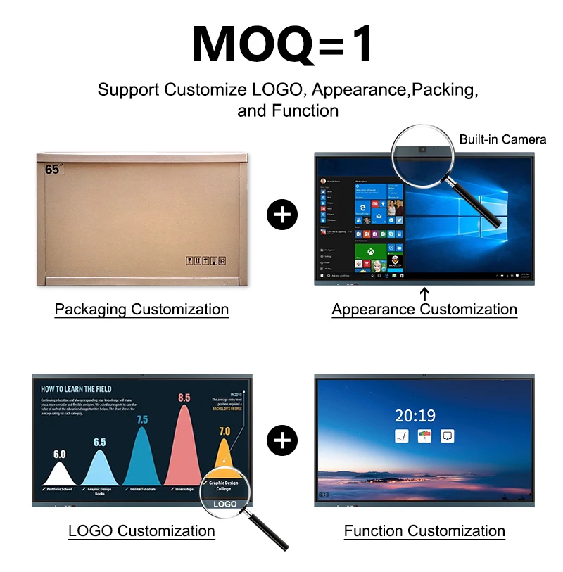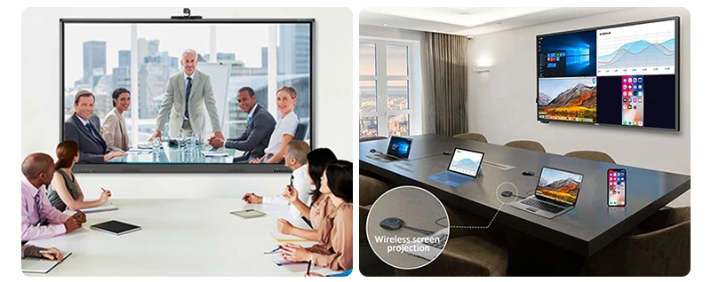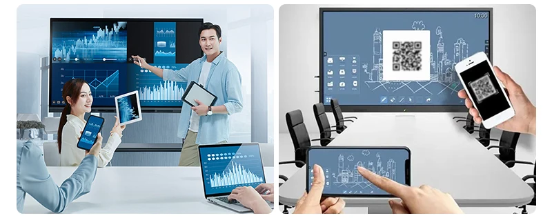 INTERACTIVE SMART BOARD ALL-IN-ONE COMPUTER GOOD FOR TEACHING AND MEETING 1.Interactive digital whiteboard: supports multi-person and multi-device editing and sharing. 2.interactive board in real-time. Ideate, brainstorm, and collaborate remotely on the same canvas across the world. 5ms response-time ensures the stylus-to-touchscreen experience is natural and familiar, like a marker on a traditional whiteboard. 3.Save Your Data to Cloud: can save content in real-time. Instead of spending time recapping and examining old notes,easily return to the canvas and keep the ideas flowing. The content you created on can be exported to your preferred Cloud Drives, like Google Drive, OneDrive, Dropbox and Box. 4.Present and annotate: smart board supports up to 4 users to screencast simultaneously via Airplay and E-share, or by connecting in via HDMI. With your screen cast, you can annotate as needed, share via video conferencing, or pin screenshots.