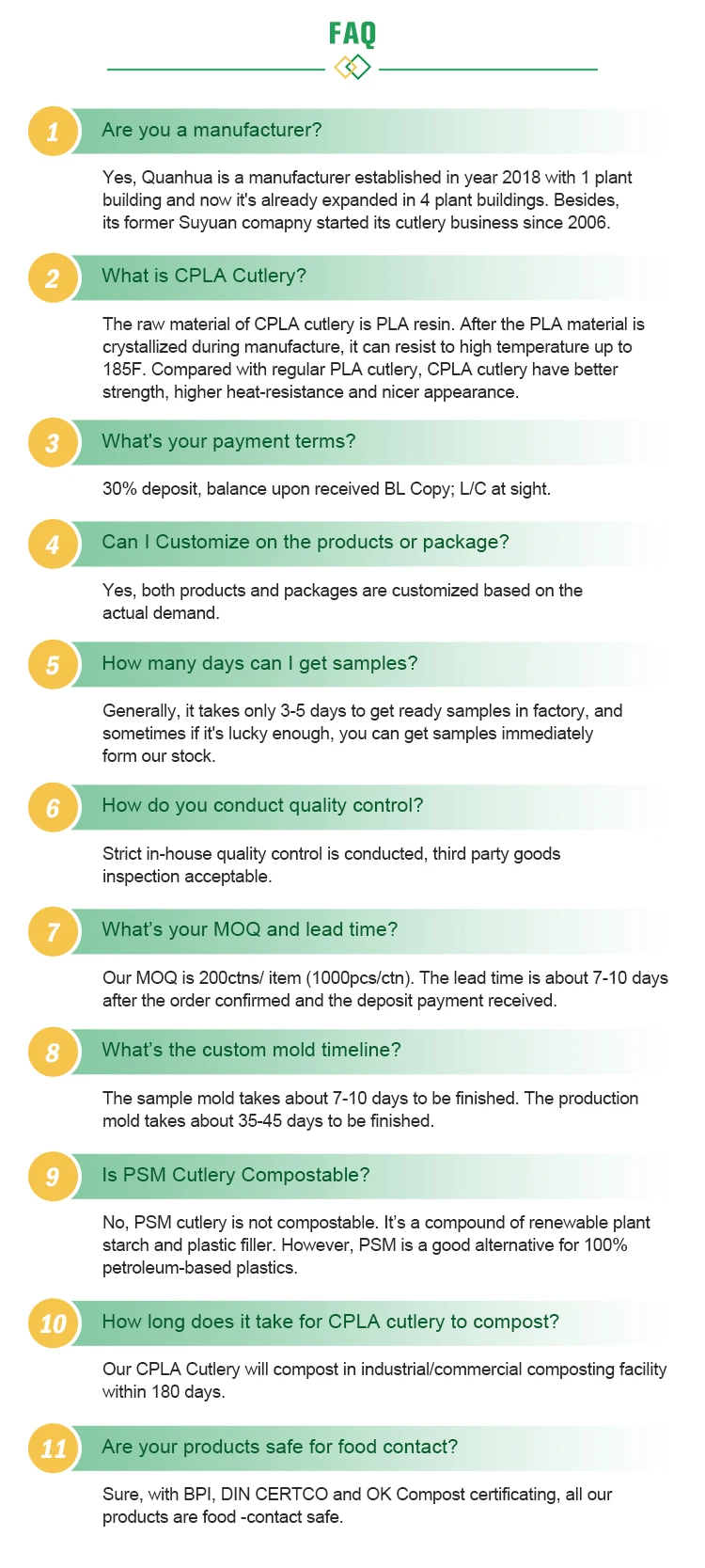 Material: | CPLA ( Crystallized Polylactic Acid ) | |||||||||||