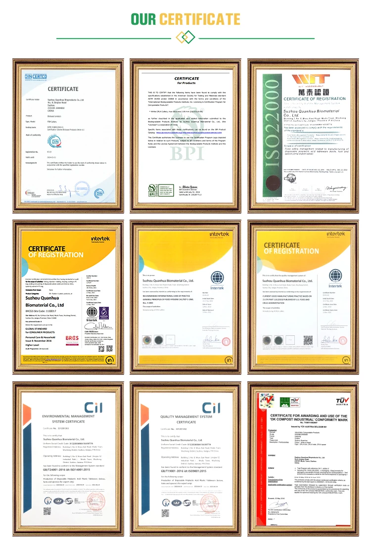 Certificates | BPI, OK COMPOST, DIN CERTCO, etc. | |||||||||||