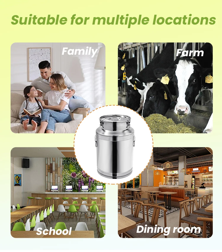 It is used to store and transport liquid, solid and other foods, such as oil, shortening, milk, wine, and whole grain, rice flour, rice wine, edible oil, etc. Our metal milk jug is your first choice for household or commercial use.
