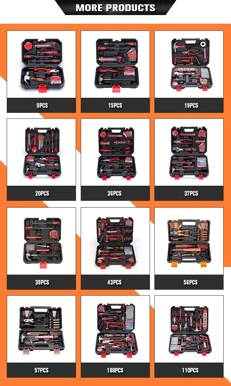 This set selects the most commonly used hardware tools in daily life, making it easy to handle circuit repairs, furniture assembly, and water pipe repairs. The tools in the set are made of high-quality materials, which are wear-resistant and durable, and maintain sharpness and accuracy even after long-term use. In addition, the set is equipped with a user-friendly handle design, which is more comfortable to use and reduces fatigue caused by long-term operation. Whether it's assembling furniture, dismantling appliances, or tightening screws, this set can provide the perfect solution. Moreover, the tools in the set have undergone rigorous material selection and process treatment, ensuring their excellent durability and stability. These two home repair tool sets reflect the brand's high emphasis on product quality and user experience. The tools in the set have undergone strict quality testing to ensure safety and reliability during use. At the same time, the set is also equipped with a detailed user manual, allowing consumers to easily get started and quickly grasp the usage method.
