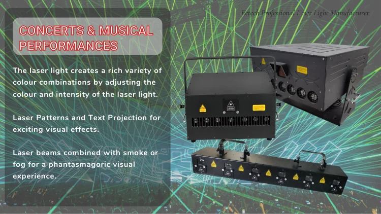 Voltage: AC110V/230V 50~60Hz±10% Rated Power: 150W Laser Light Source: Semiconductor Pump Laser Laser Modulation: TTL Laser Wavelength: 638nm*520nm*450nm Laser power: 12W (2W RGB*6PCS) Laser Color: Full Color Laser System: Precision stepper motor scanning system, X-axis swivel head 540°, Y-axis laser head swing 180°. Laser Effect: Laser Skynet Beam Show, Streamline Laser Effect, Laser Strobe Effect, Laser Beam Sense, Streamline Strobe and other effects Control modes: voice-activated, auto run, DMX512, master-slave DMX channels: 11,26,38 channels can be selected Use of the environment: indoor Operating Environment: DJ, Disco, performance, bars, KTV, stage, clubs, weddings, theatres, Party, Live Events, Festivals, Nightclubs, Bars, other entertainment venues, etc. Working Temperature: -20°C~45°C |