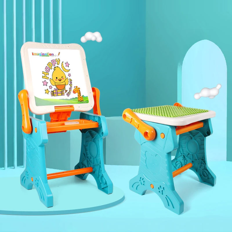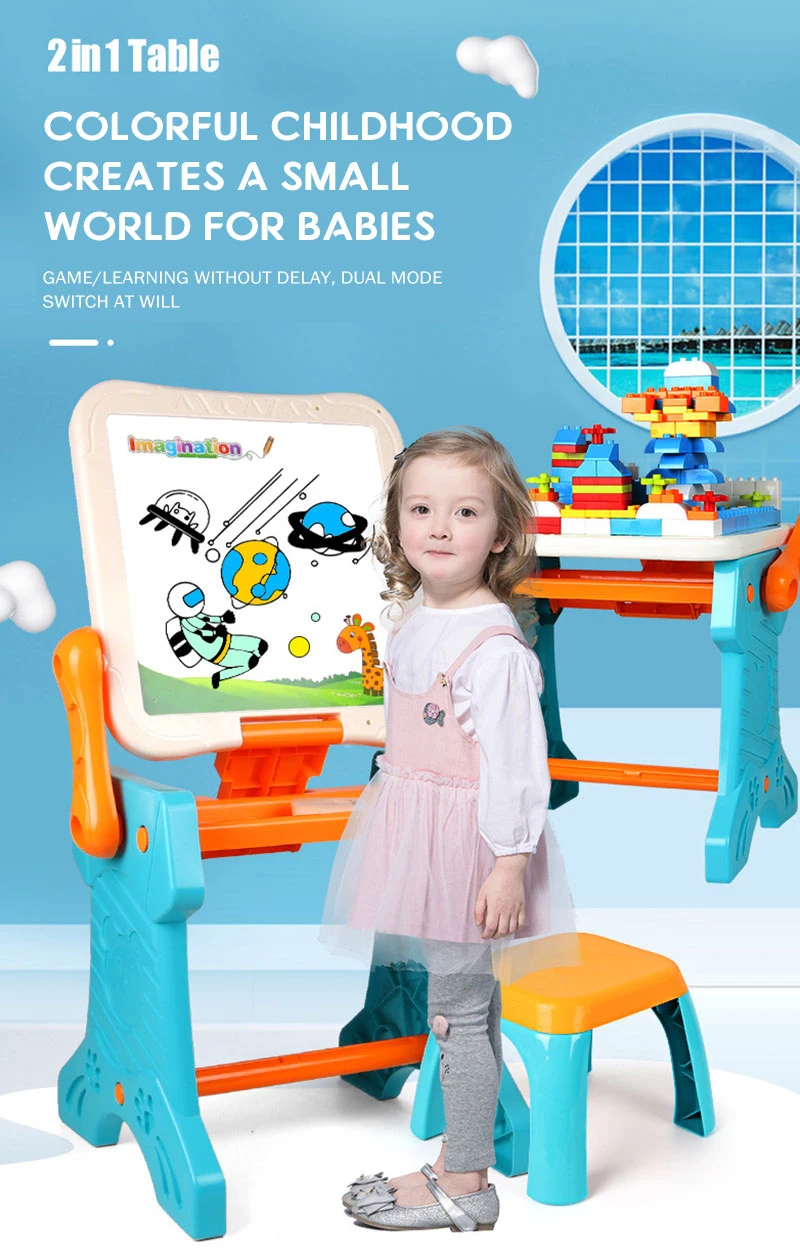 1. Building blocks drawing table 2 in 1 creative design. Multi-functional gameplay blending. Unlock more childhood pleasures.