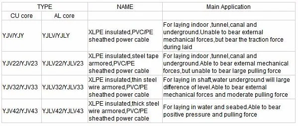 PVC/XLPE power cable is used to transmit and distribute power in power transmission and distribution system of 35kV or lower. It is generally applied to the fields including power, construction, mines, metallurgy, petrochemical industry and communication in complete replace of oil immersed paper insulated power cable and in partial replace of PVC insulated power cable.