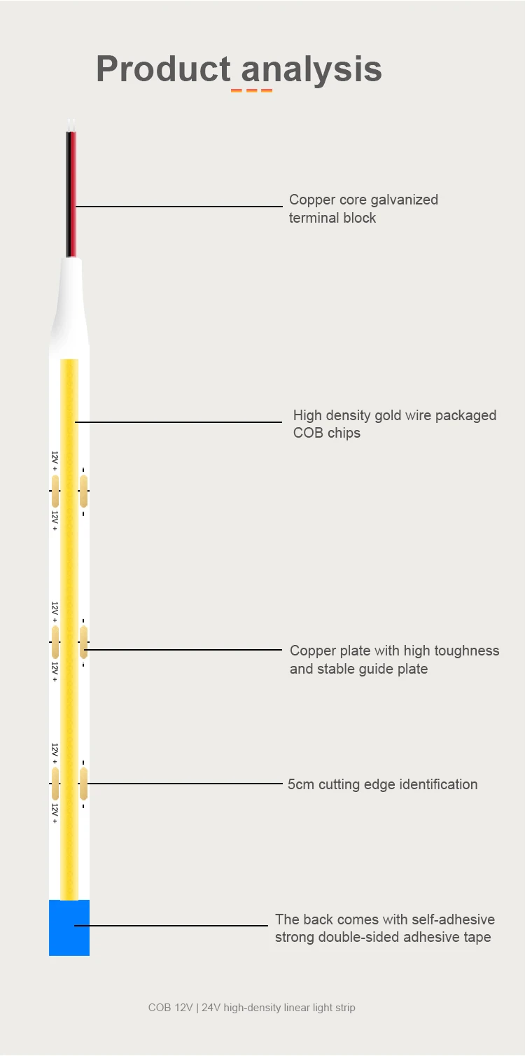 Low voltage self-adhesive cob light strip