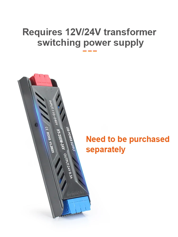 An additional 12V/24V transformer switching power supply is required.