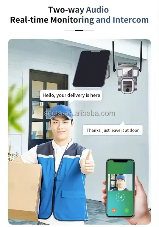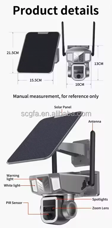 • The product quickly sleeps and wakes up quickly to achieve intelligent power saving • Adopt high-performance 1/2" black lightfull-color image processor • Solar rechargeable built-in battery • 1080P HD video • Ultra low power consumption, long standby • Built-in microphone and speaker, support two-way voice intercom • Sound and light alarm function • Support cloud storage localstorage • APP supports Android/IOS • Metal body, IP65 outdoor waterproof |