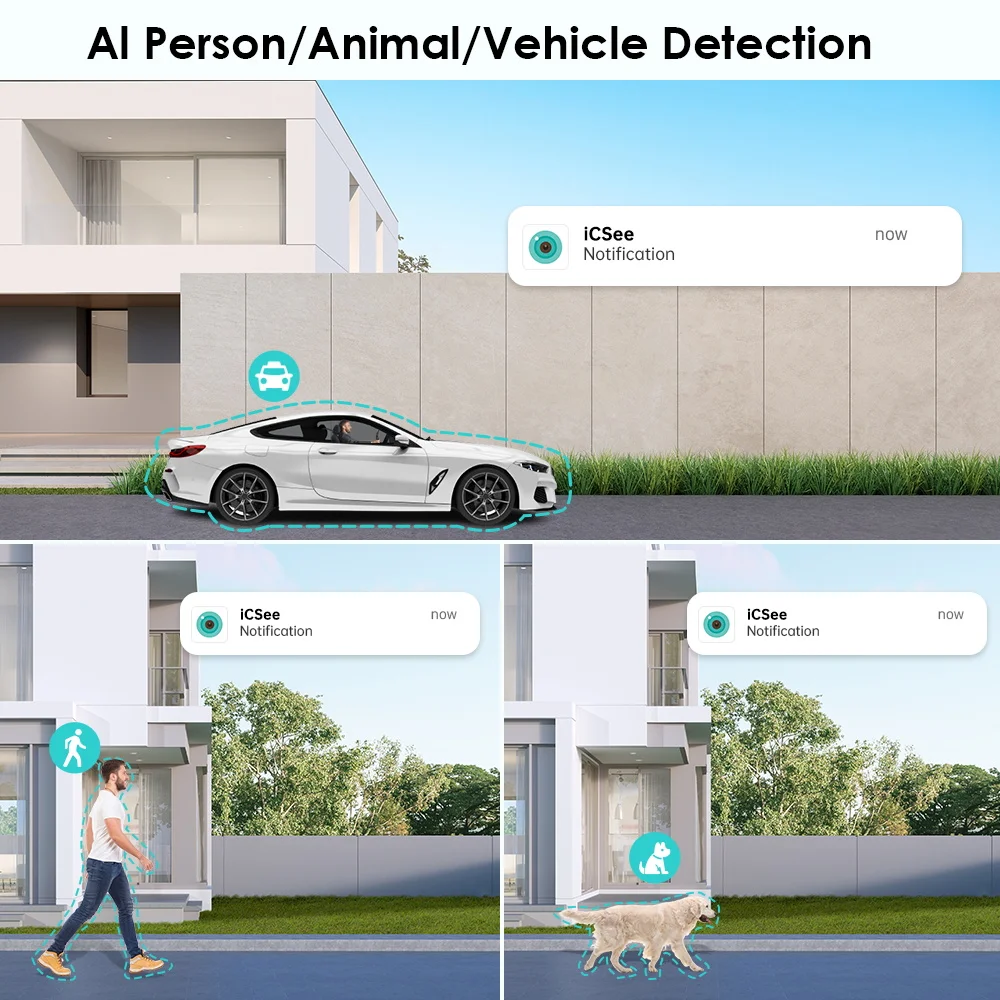 - Supports motion detection, AI humanoid detection and message push alerts to mobile app.