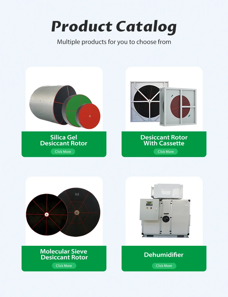 NOTE:Process air inter condition 25°C 80%RH=16g/kg(DA) Regeneration air inter condition 140°C 16g/kg(DA) *The desiccant rotors' size can be customized. |