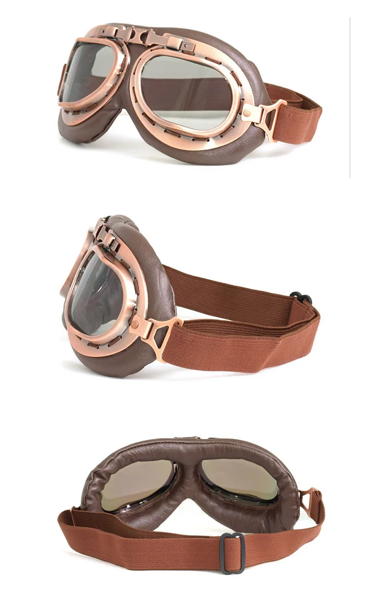 Frame Color: Retro. Frame Material: ABS. Leather color: Brown. Lens color: Silver / Clear / smoke/ rainbow/ Yellow lens etc for option Package Included: 1x Goggles( Polybag Package) OEM/ODM service is available. Factory price with faster lead time. Application:Motor racing, riding, motocross, outdoor sports, harley motorcycle eyewear etc.