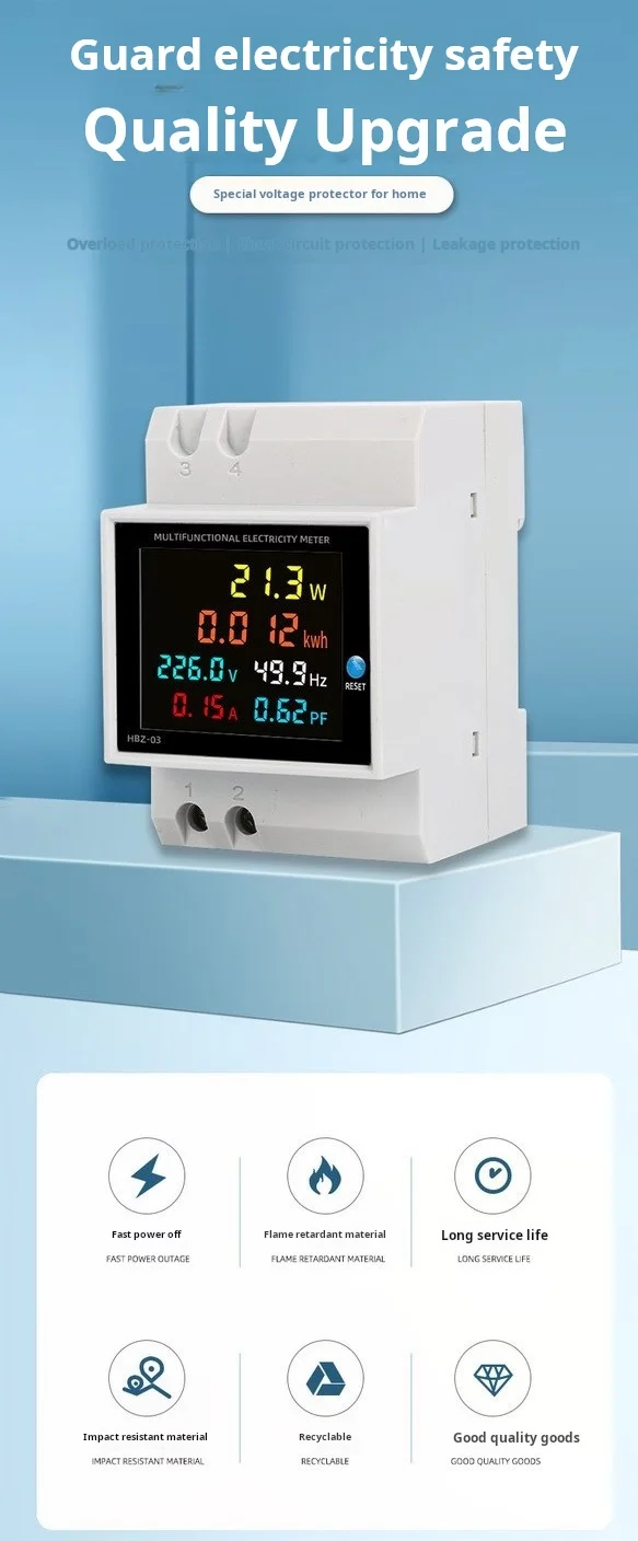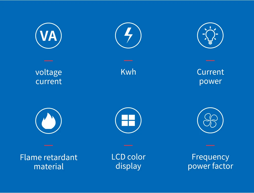 | Electric Energy | 0-99999kwh, the display of electric energy resolution is 0.01kwh when measure electric engery between 0-999.99kwh, the display of electric energy resolution is 0.1kwh when measure electric engery between 1000.0-9999.9kwh and the display of electric energy resolution is 1kwh when measure electric engery larger than 9999.9kwh |