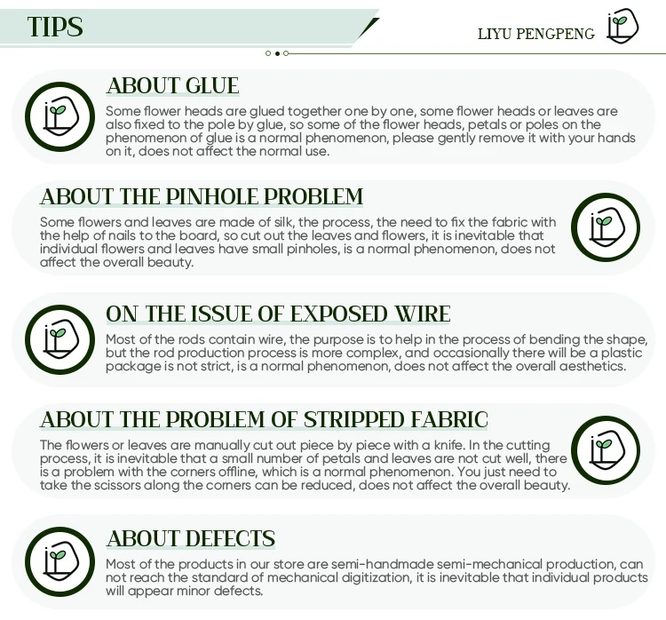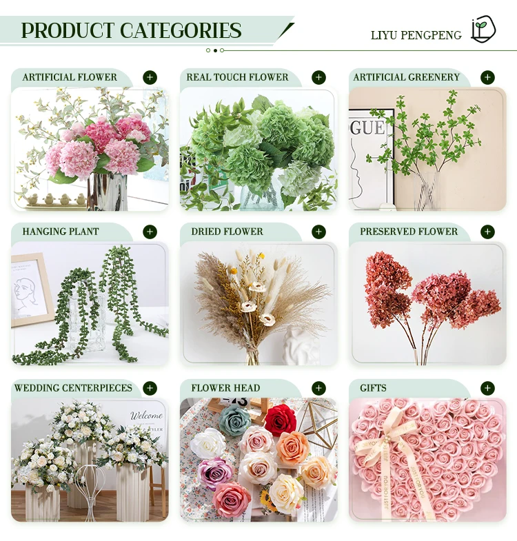 Qingdao Liyu Pengpeng Technology Co., Ltd is a professional manufacturer and designer of artificial flowers, artificial plants, floral arrangement, holiday and wedding decorations. We have a workshop with hundreds of people and a sales service team and a quality control team. So all of them can be customized as per your requirements at excellent quality products with competitive price. But it doesn't stop there! We will be as realistic as possible to what nature provides. We bring high quality artificial and dried blooms to your home, office or special event and will make your friends and family wonder how real they look. Our products are very popular in Europe,America, Asia and South-East Asia, covering more than 30 countries and areas in total and enjoy a fast sale and good reputation.We sincerely hope to become friends and long-term stable cooperative relationship with you. Welcome to our website and contact us. Looking forward to your early inquiry!