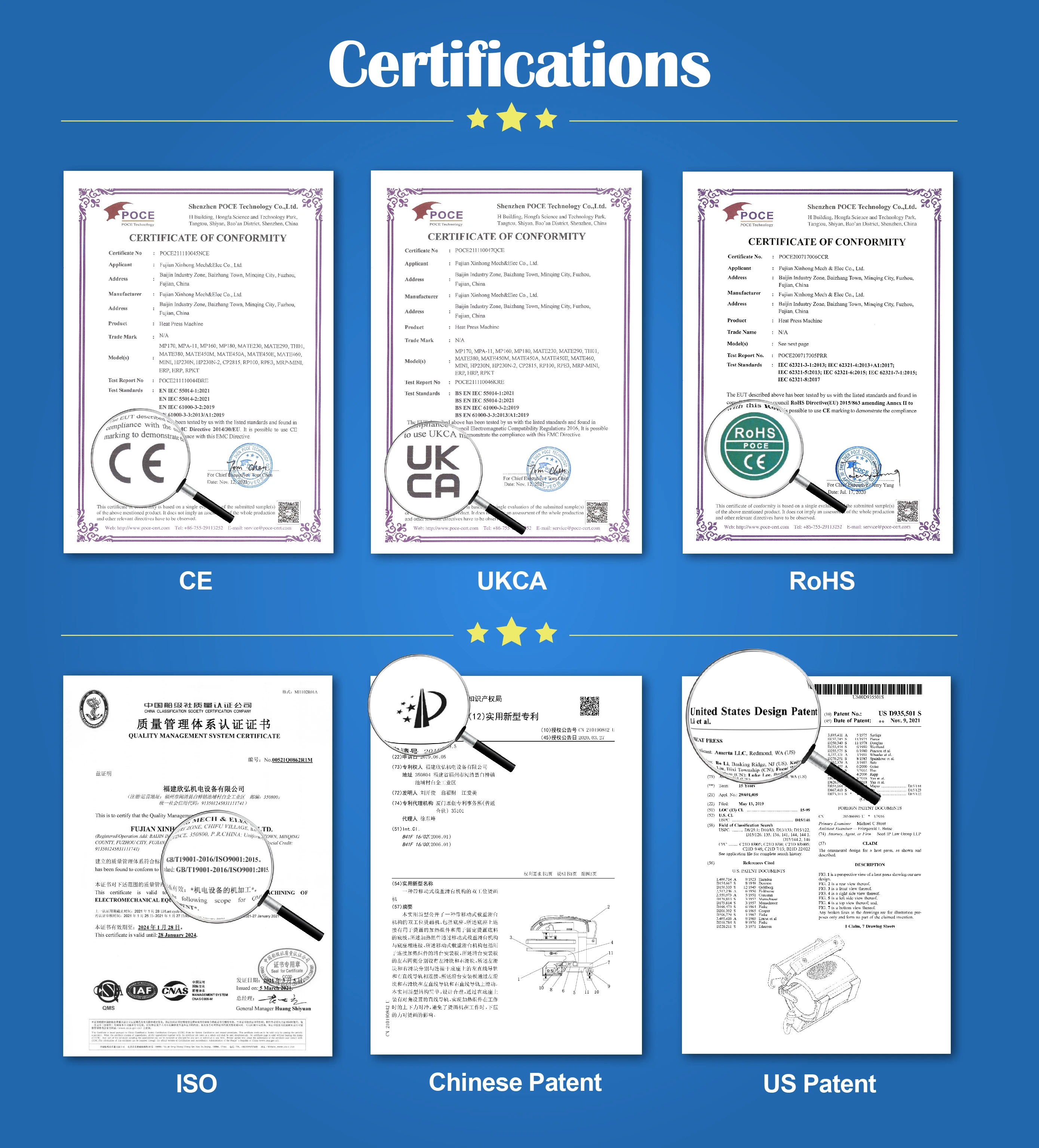 Established in 2002, Xinhong Group Limited reorganized and expanded production in 2011, and has acquired quality management system certification of ISO9001, ISO14000, OHSAS18001 and CE, UKCA product certificate, also acquired many patent in China and USA, etc.