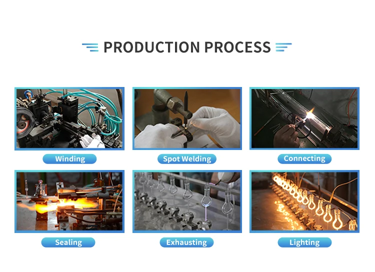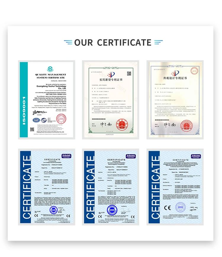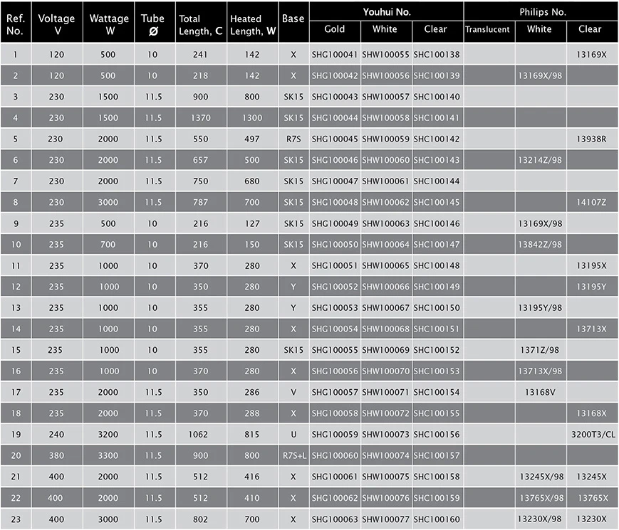 Infrared lamps, also known as infrared heating lamps, refer to lamps whose main component of radiation is in the infrared spectrum range. Infrared lamps can provide precisely controlled energy radiation and can be used for heating. Industrially, they are mainly used in hot electronic wafers in the semiconductor industry, blown PETP bottles, reflow soldering equipment, dry fillers, dry paint in motor vehicle repairs, and mainly in medical applications. It is used in toner positioning in copiers, melting of solder on printed circuit boards, food heating and disinfection, etc. Infrared lamps are widely used in machinery, automobiles, food,medical and other industries.
