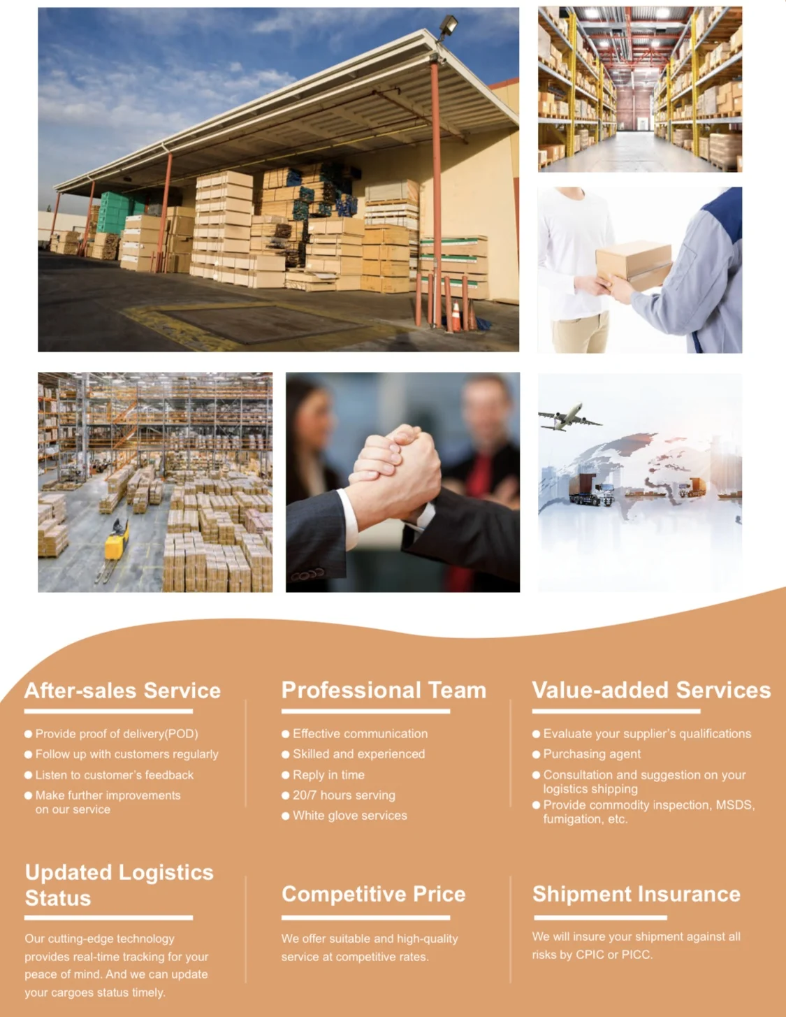 1.Amazon FBA service: Provide professionaland high effient delivery service from China to FBA Amazon by air/express/railway/sea and truck.