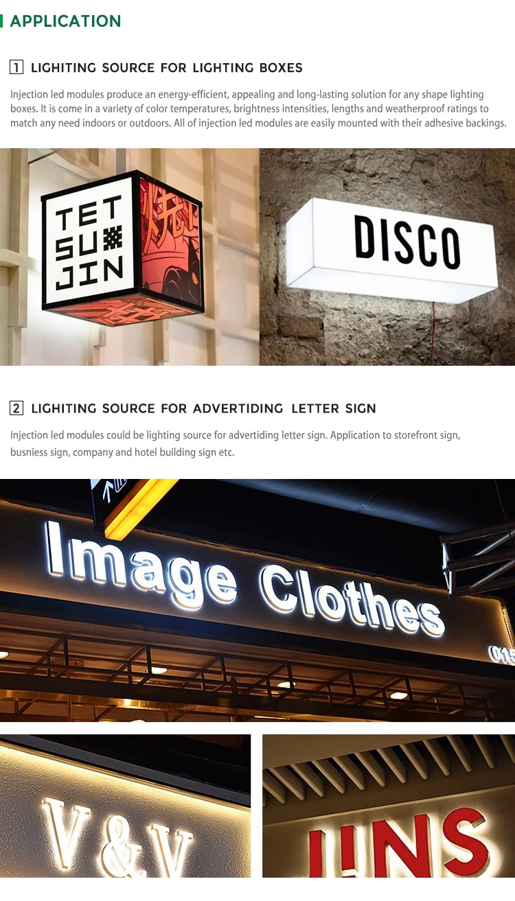Application scenarios: | Outdoor lighting products such as lightboxes, signs, and illuminated letters with logos |