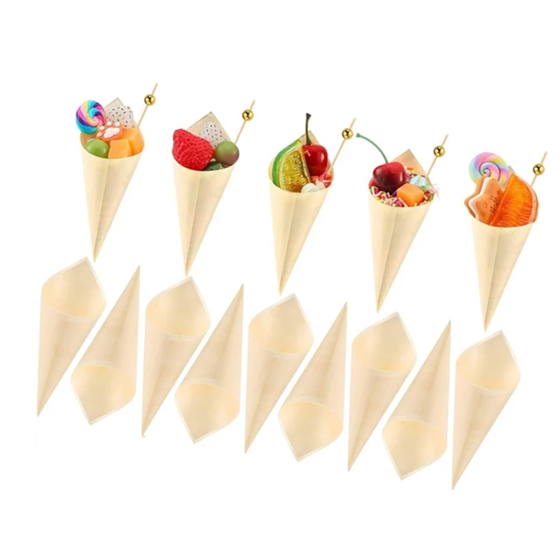 Wholesale Wooden Fruit Holder Biodegradable Disposable Packaging 150mm Wooden Cone Shape Ice Cream Wrapping