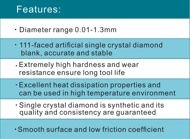 Mono /SSCD (Synthetic single crystal diamond) is a synthetic diamond under controlled conditions.It has high purity, no impurities and no cracks.These quality characteristics also make the life of the wire drawing die stable and predictable.
