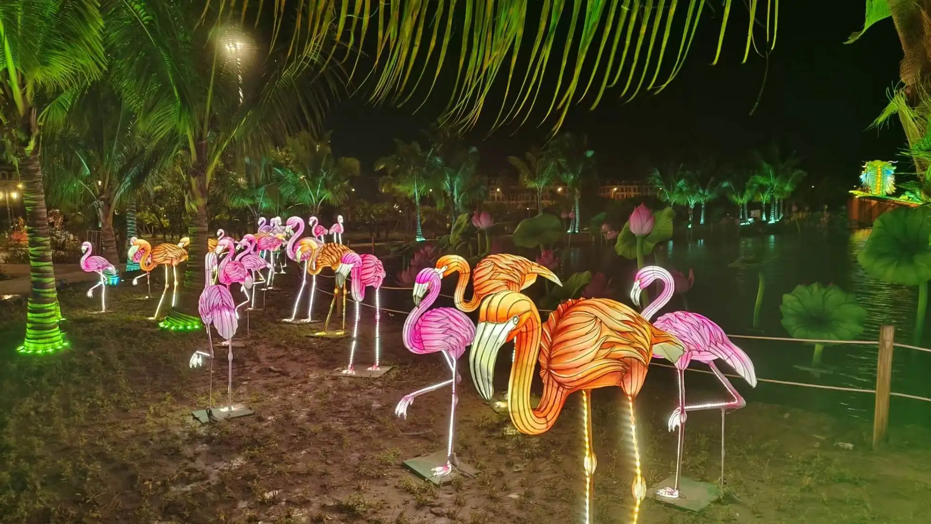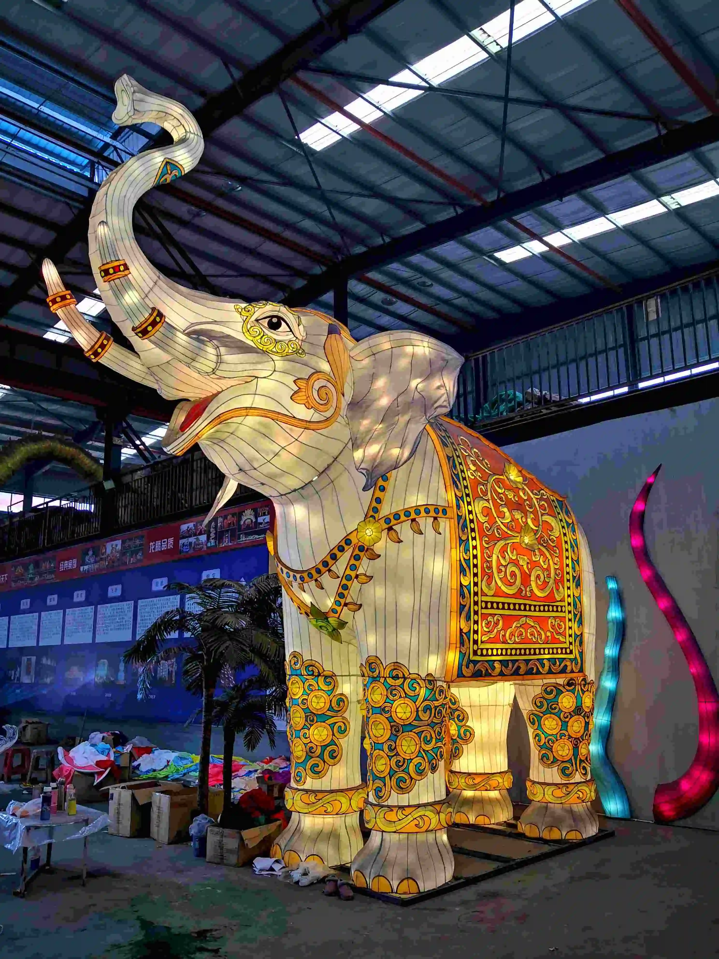 ProductionProcesses | 1. Design:Have design according to client's requirement, such as the environment the colorlantern being placed, theme, size, shape,color, etc. 2. Make the steel frame by Electric welding machine 3. Coverwith color cloth: The materials for covering color lantern are different,including cloth, silk, nylon, paper, cellophane, etc. For color lanterns indoor/outdoor used, satin cloth is necessary, which is water-proof and UV-protect sothe color can be kept for a long time. 4. Assemble: Besides traditional color lanterns for Mid Autumn and LanternFestival, huge group lantern is more and more popular nowadays. The huge grouplantern is composed of some parts, and the assembling is one of the main parts of an entire group lantern. |