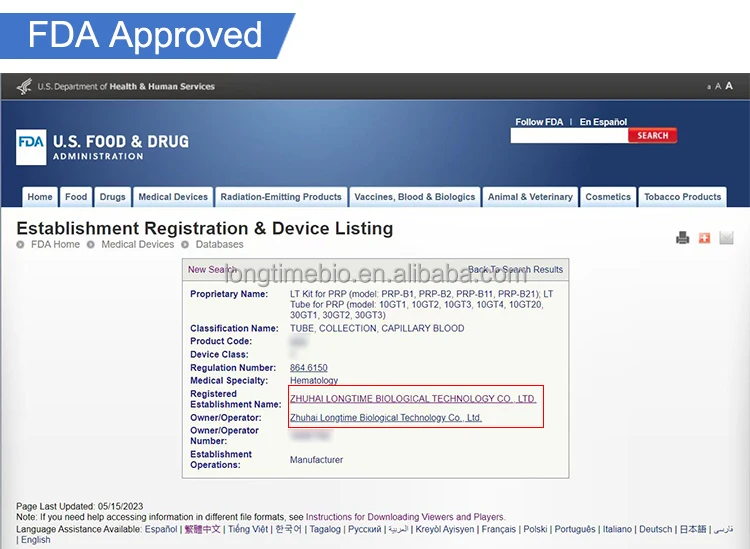 The only China's manufacturer with NMPA(CFDA) Class III for PRP with gel tube in China, and sell to China 's hospitals, and it's the TOP 1 PRP brand in China.
