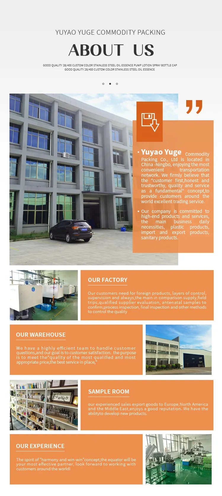 1) Is your company a trade company or manufacture factory?We are manufacture factory which producing mainly in trigers,pumps,and cosmetic sprayers.