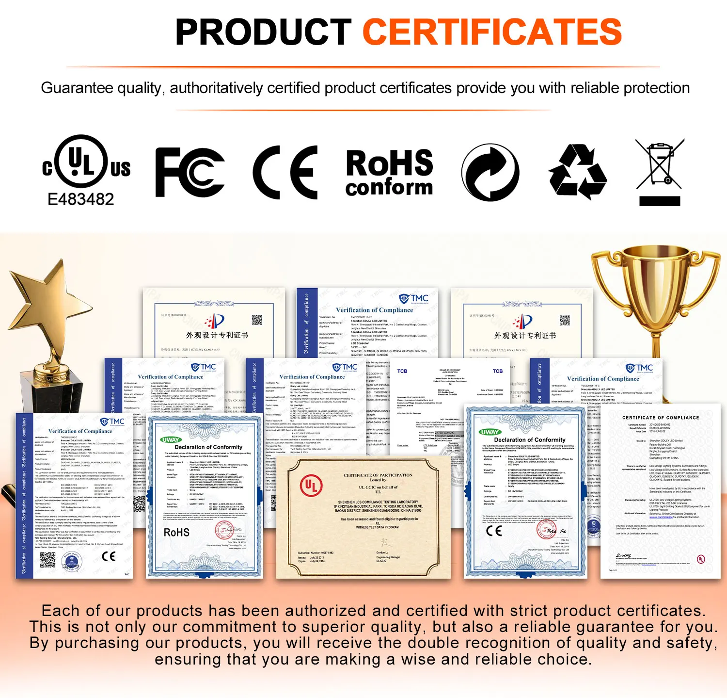 We have obtained UL, FCC, CE, and RoHS certifications, also selling well in different counties for the world, such as USA, Canada and so on.