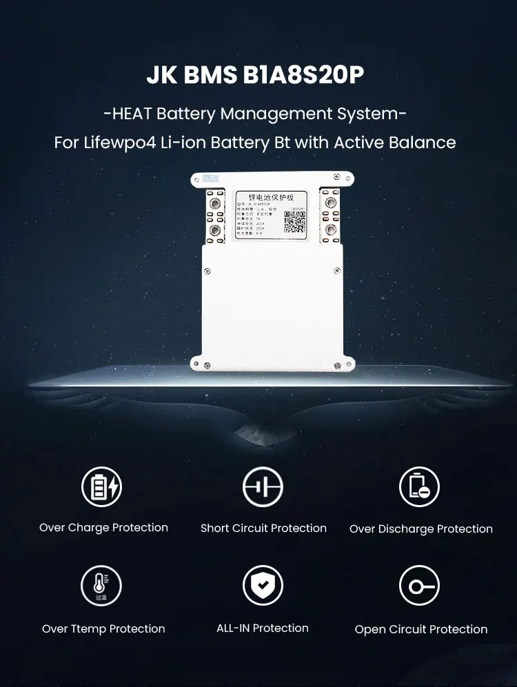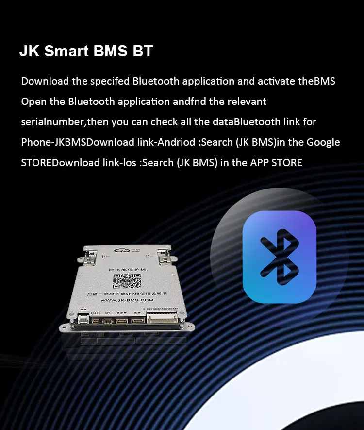 JK BMS Support optional functions CAN/RS485 communication, soft switch, heating function, GPS. etc.. Support LOGO customization,