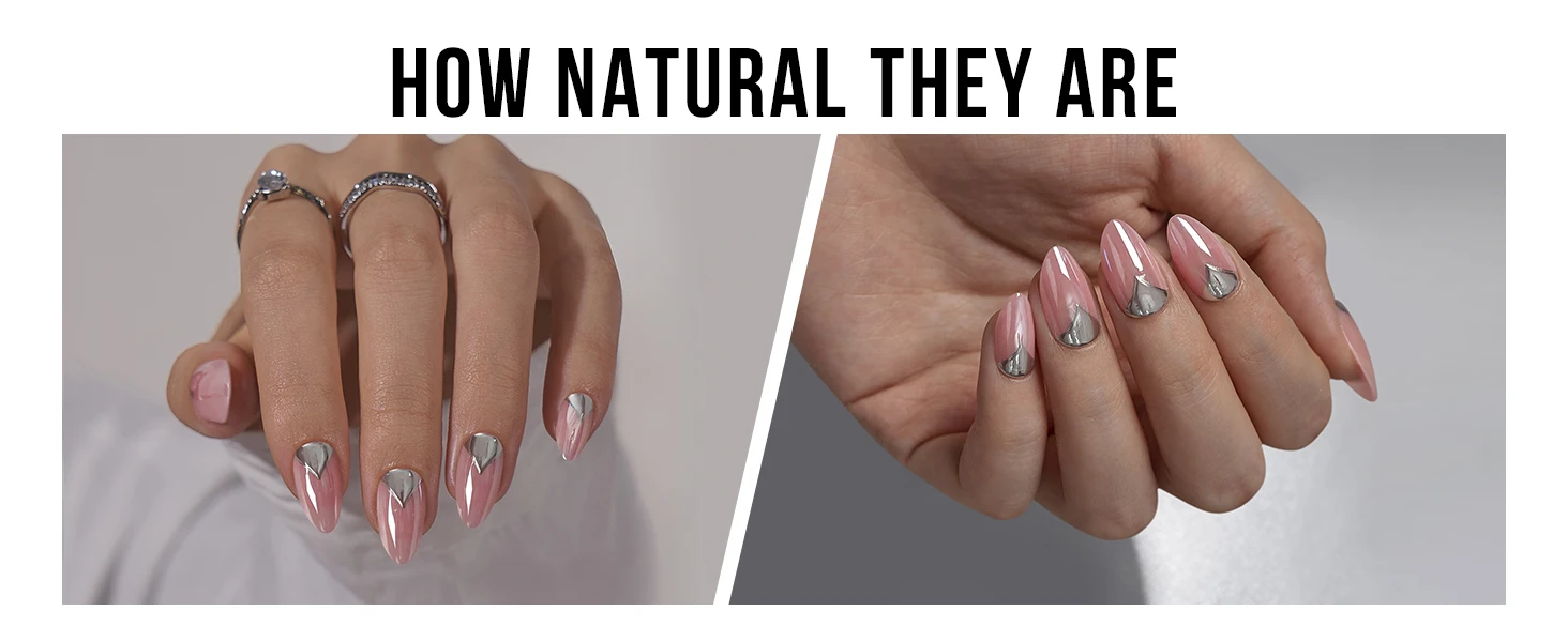 * How Natural They Are: These white press on nails are made by soft gel which is soft and flexible, zero pressure on your nail beds and feel like real nails. Supremely fit the nail bed with a gentle flex and a seamless cuticle line.