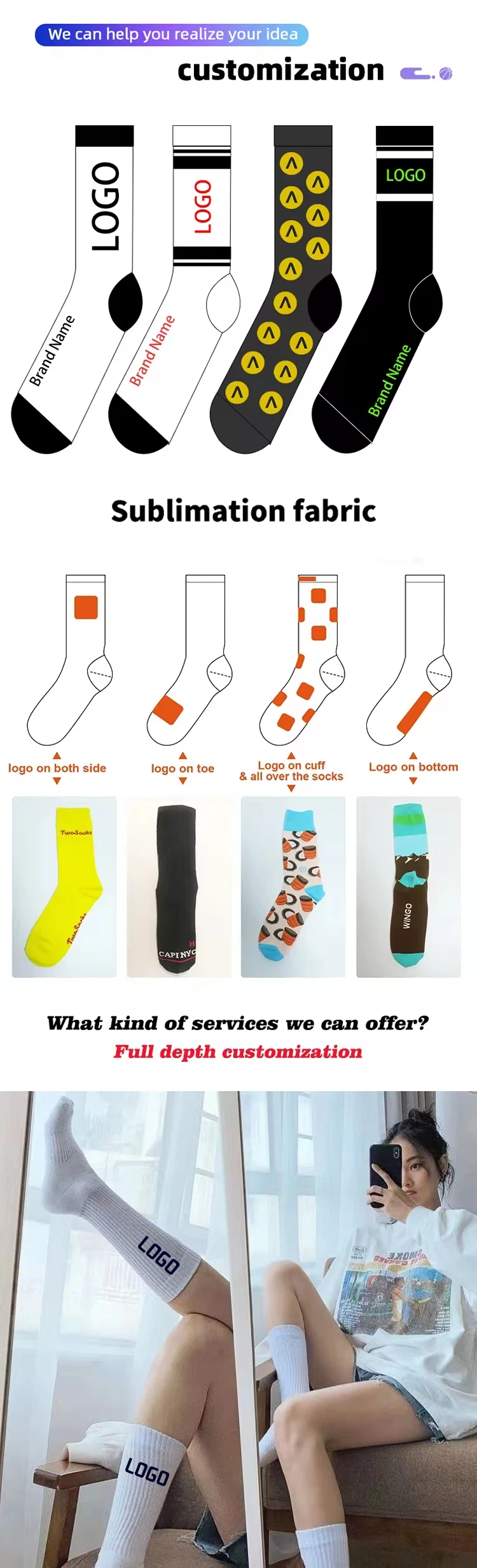 Logo, Design and Color | Offer Custom option,make your own designs and unique socks |