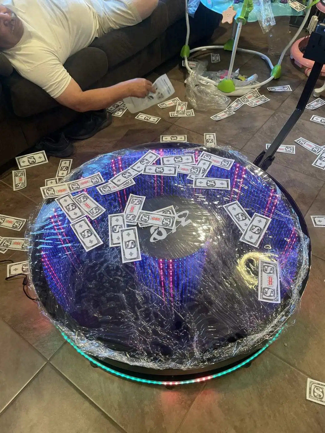 Some Features | 1. Slow start & high speed smooth rotation 2. Easy setup & transport, any van can load it 3. Extremely stable & safe, Anti-slip & shaking, 0 noise 4. Ultra lightweight, in & out at an event within minutes 5. Pre-installed light strip & bottom pad, extra convenience |