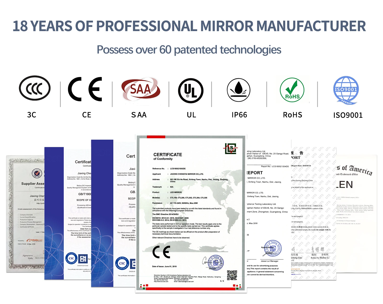 Material | 5mm environmental silver mirror, anti-corrosion, shatter-proof mirror treatment | ||||||