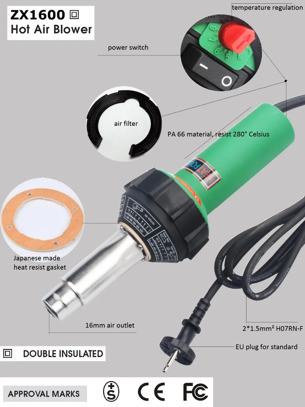experience of design and production, and the feedback of the products from our customers, Heatfounder brand ZX1600 hot air