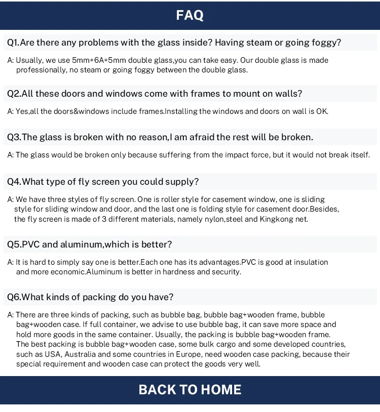 Glass | 1.Low-E/Reflective/Tempered/Floated glass 2. Glazed: Single/Double/Triple glass 3.Laminated glass Double:5mm+6A+5mm/5mm+9A+5mm/6mm+9A+6mm. 6mm+12A+6mm Triple: 5mm+6A+5mm Laminated : 4mm+0.38pvb+4mm/6mm+0.76pvb+6mm,etc. Clear/Clear/Grey/Light Green,ect. |