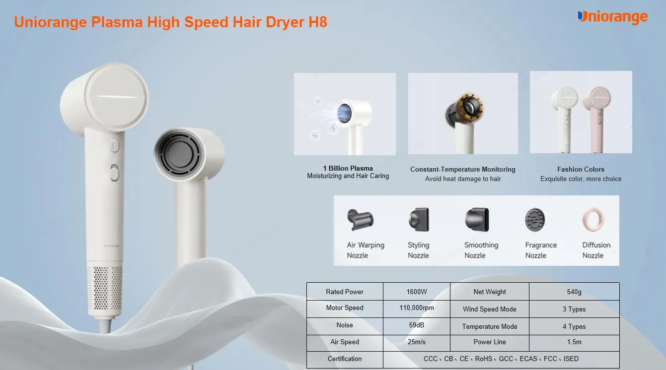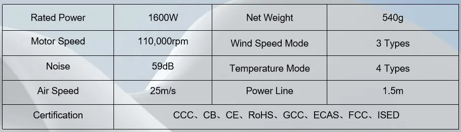 8 steps noise reduction technology, the operating sound is reduced to 56.6dB, which is the lowest noise in the industry. Hair blowing does not affect others' rest, and it can also be used safely for pet hair blowing without resistance, which brings a better user experience.