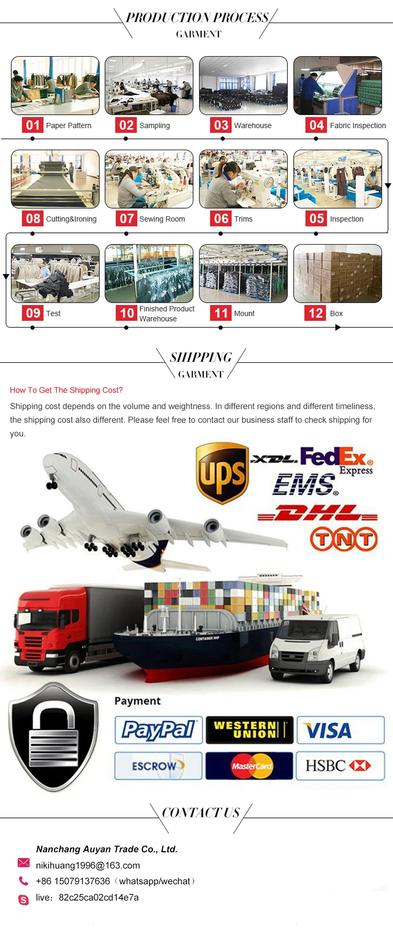 Payment | L/C, TT, Western Union, Money Gram, Paypal, Alipay, Cash etc |
