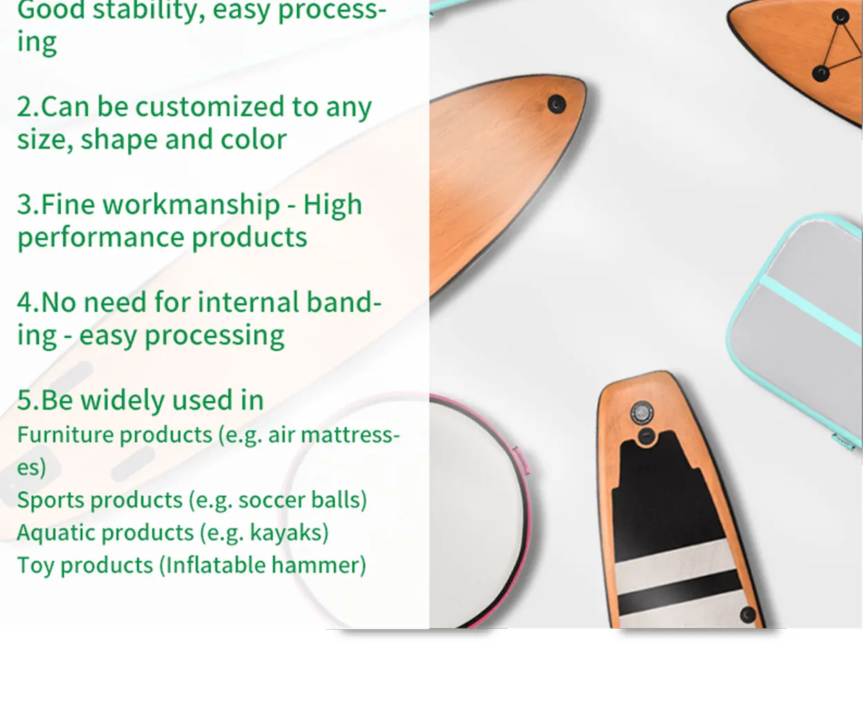 1.Light and skin-friendly, safe, comfortable and tasteless, using TPU Drop Stitch Fabric, pressure resistance, durable