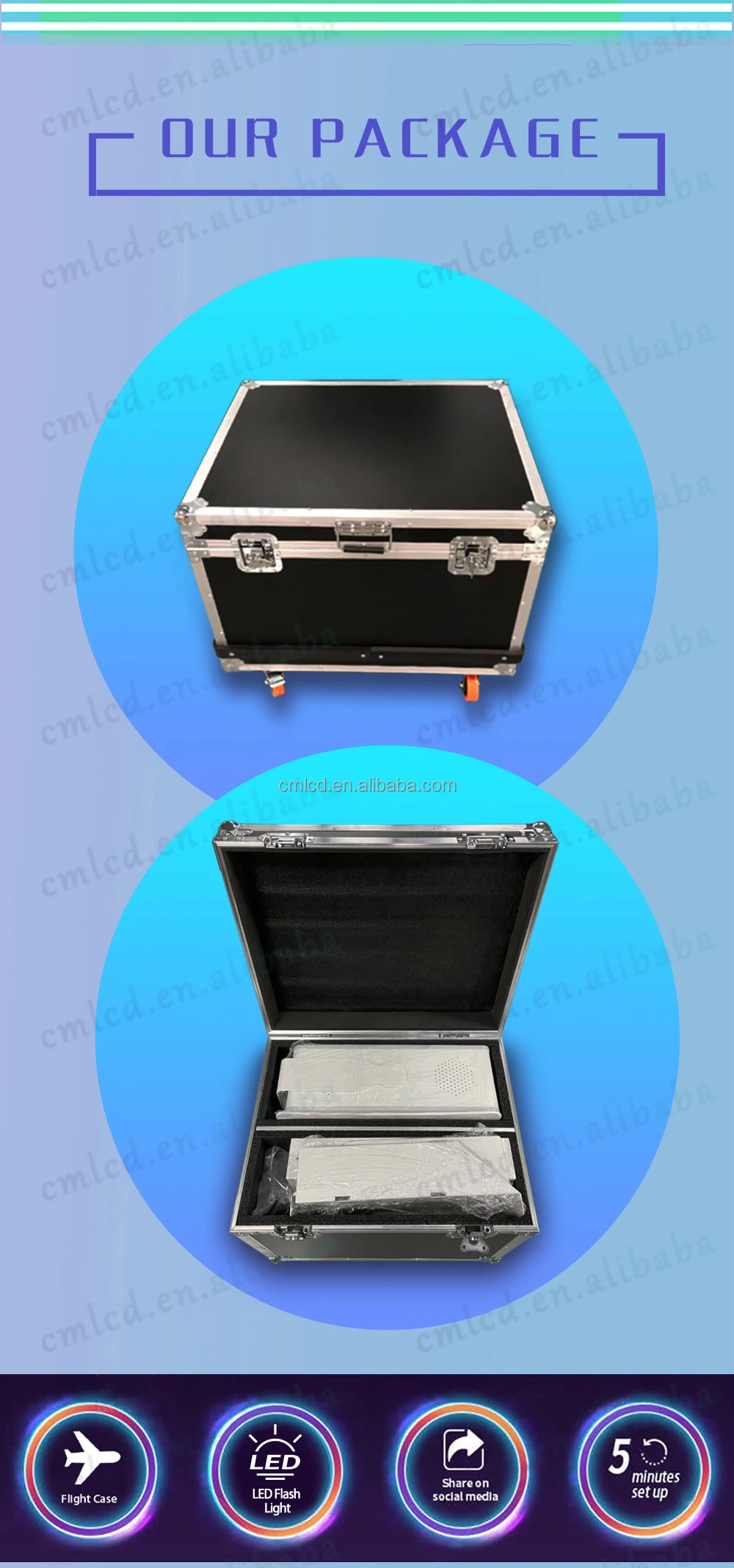 Option 2 | Mirror booth metal shell (Leave space to install camera and printer) with 13.3 inch capacitive 10 touch screen and led ring flash light and printer shelf and flight case + i5 mini pc box | |