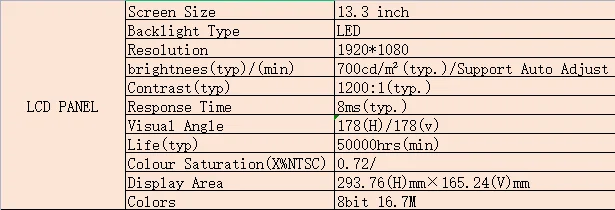 Monitor | 13.3 inch | |