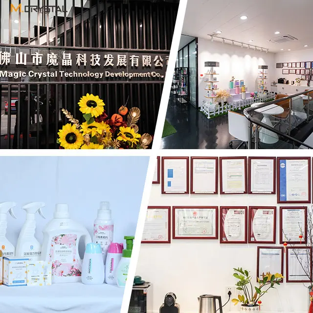 M.crystal was establised at 2019. Relying on the raw materials and soft technology of our parent facotry( Dasun Tech) which has been in textile softener products manufacturing more than15 years, M.crystal has been researching and developing a series of daily chemical products characterized by softening function, laundry fragrance beads, clothing softener, laundry detergent, laundry gel beads, air freshener spray, shoe deodorant spray, floor cleaner, and coffe&tea set cleaner etc. Duo to our continuously hardworking, we become the best quality and the highest quantity output manufacture for Laundry fragrance beads in our domestic market.