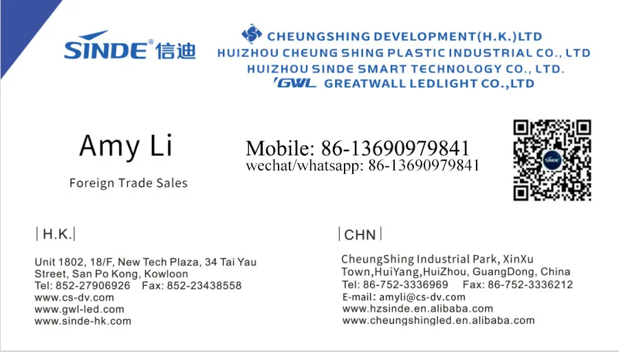 4)Do you have after-sale team? A:Yes,we have after-sale team in Hong Kong and HuiZhou to take care of problems. Welcome to visit our factory!