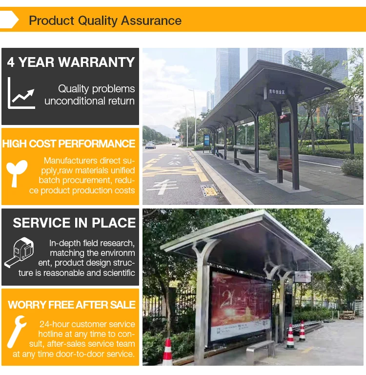 High Quality Outdoor Shelter Advertising Light Box Bus Stop Best Price Modern Stainless Steel Bus Station