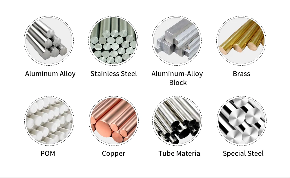 Aluminum (6061-T6, 6063, 7075-T6,5052) etc... Brass/Copper/Bronze etc... Stainless Steel (302, 303, 304, 316, 420) etc... Steel (mild steel, Q235, 20#, 45#) etc... Plastic (ABS, Delrin, PP, PE, PC, Acrylic) etc... | |||||||