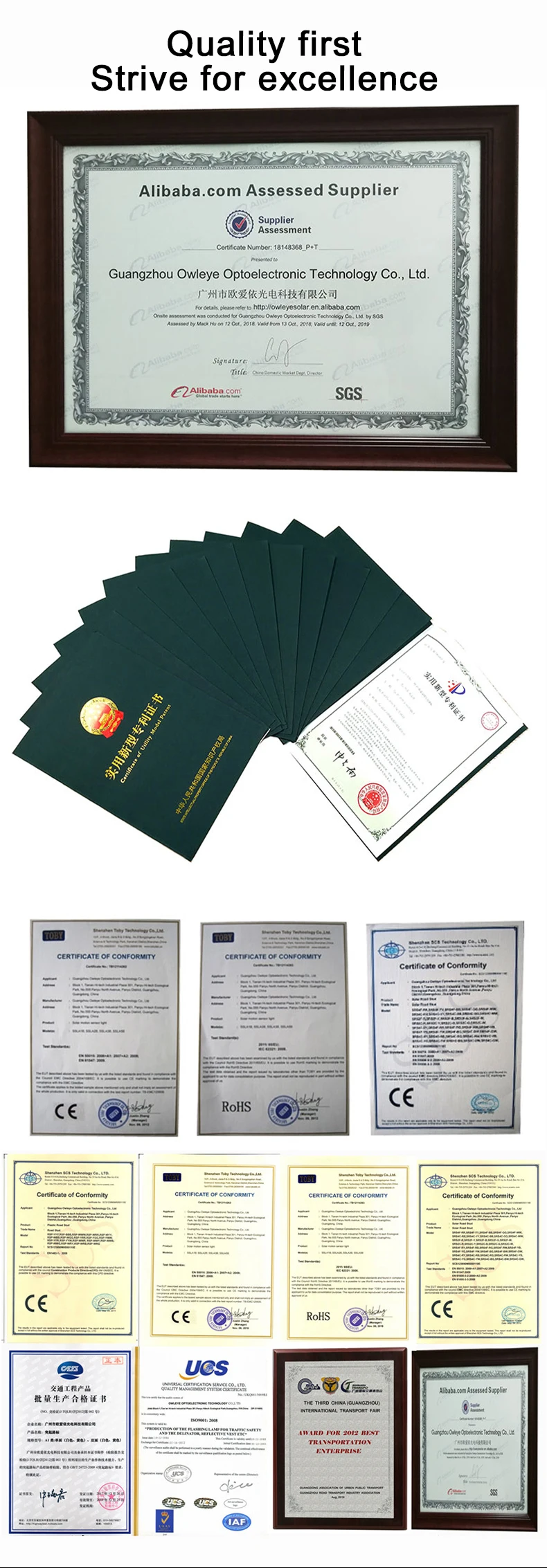 With a series of advanced automatic production equipment, testing equipment, perfect production technology and standard product quality inspection system, the product has obtained the certificate of qualified mass production of traffic engineering products, utility model patent certificate, design patent certificate, CE, ROHS certification, etc.