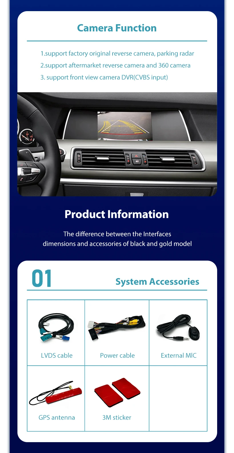 Functions: 1) Wireless Apple Carplay 2) IOS AirPlay mirror link 3) Android Auto 4) Andoid phone mirror link 5) Combine up to 95% original car Mic , not need to add external Mic. 6) USB play (music,video) 7) EQ adjustable with best audio quality 8) Original car wire plug and play,no cutting wire, no breaking wire,non-destructive This amazing kit adds full CarPlay functionality to your existing CIC,NBT,EVO while retaining all the original NBT features.The CarPlay system supports button and steering wheel control and is integrated with the console or glove box USB. Whether your CIC,NBT and EVO system is factory-equipped with navigation, phone module or Bluetooth, whether it's Apple Maps, Spotify, making/receiving calls or using Siri to reply to text, the system fully supports Apple systems and phone features.