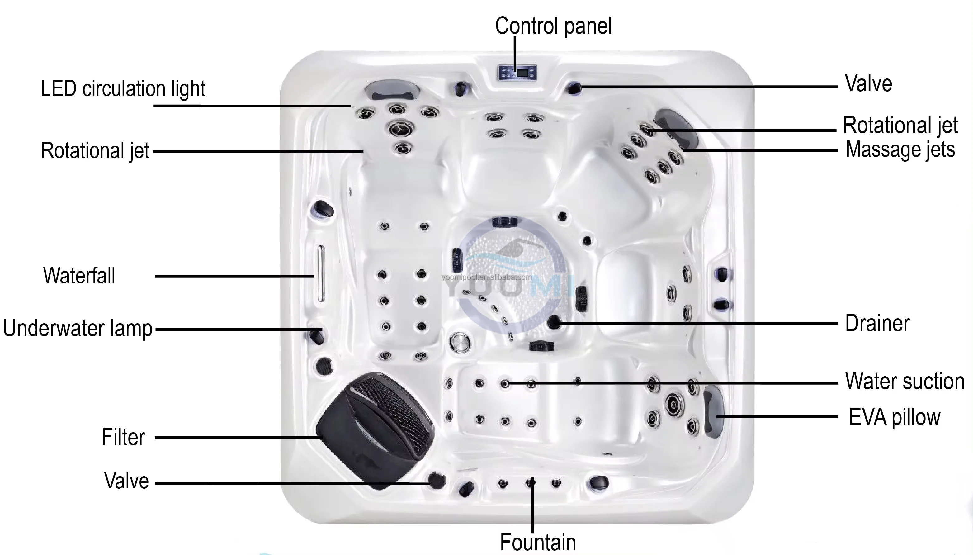 1) We have many kinds spa tub for you to choose : 2 person,3 person, 5 person, 6 person and 7 person