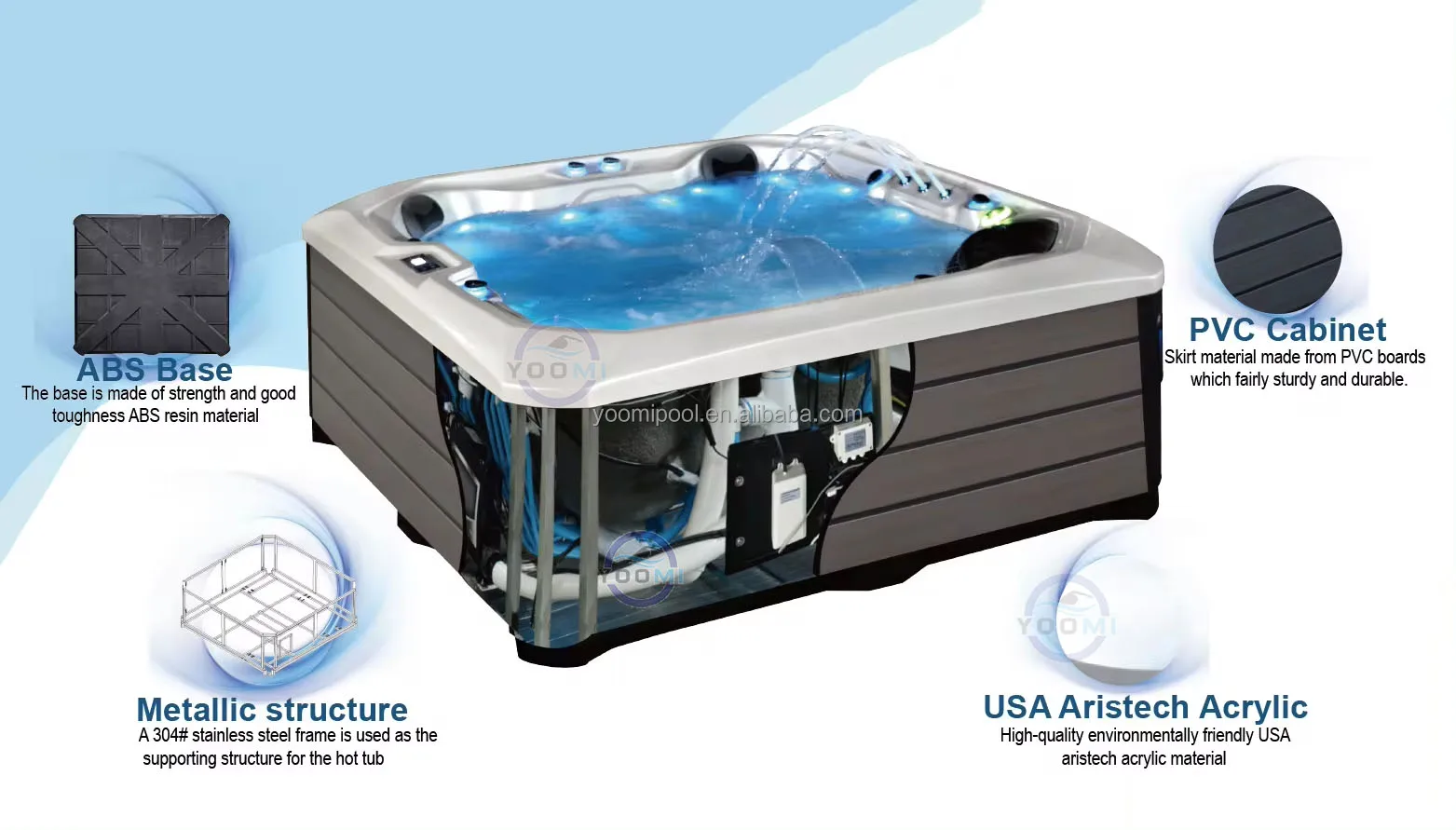 Guangzhou Yoomi Swimming Pool Equipment CO.,LTD is in Guangdong provice, our factory is located in Shishan industrial zone, Nanhai District, Foshan city, which covers an area of 15,000 square meters.