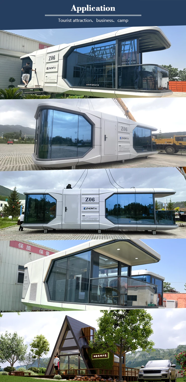 major structure | steel-frame construction,Aluminium veneer housing(2.5 thick aluminum veneer),The shell is filled with thermal insulation,Exterior glass(Tempered insulating glass),skylight glass(laminated glass),Superior entry door(Intelligent door lock),Outdoor ambient light belt(waterproof),Load bearing support foot brace |