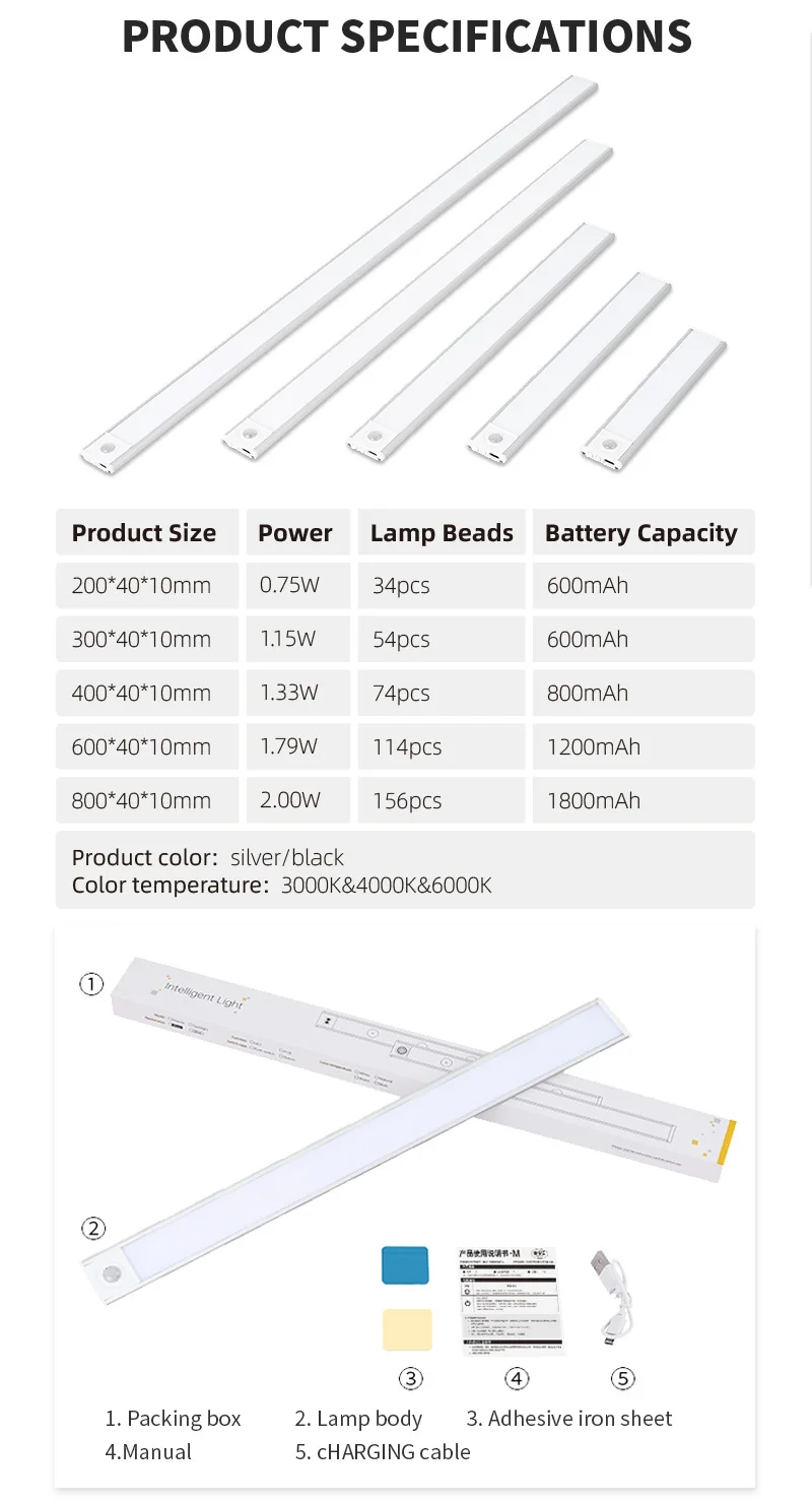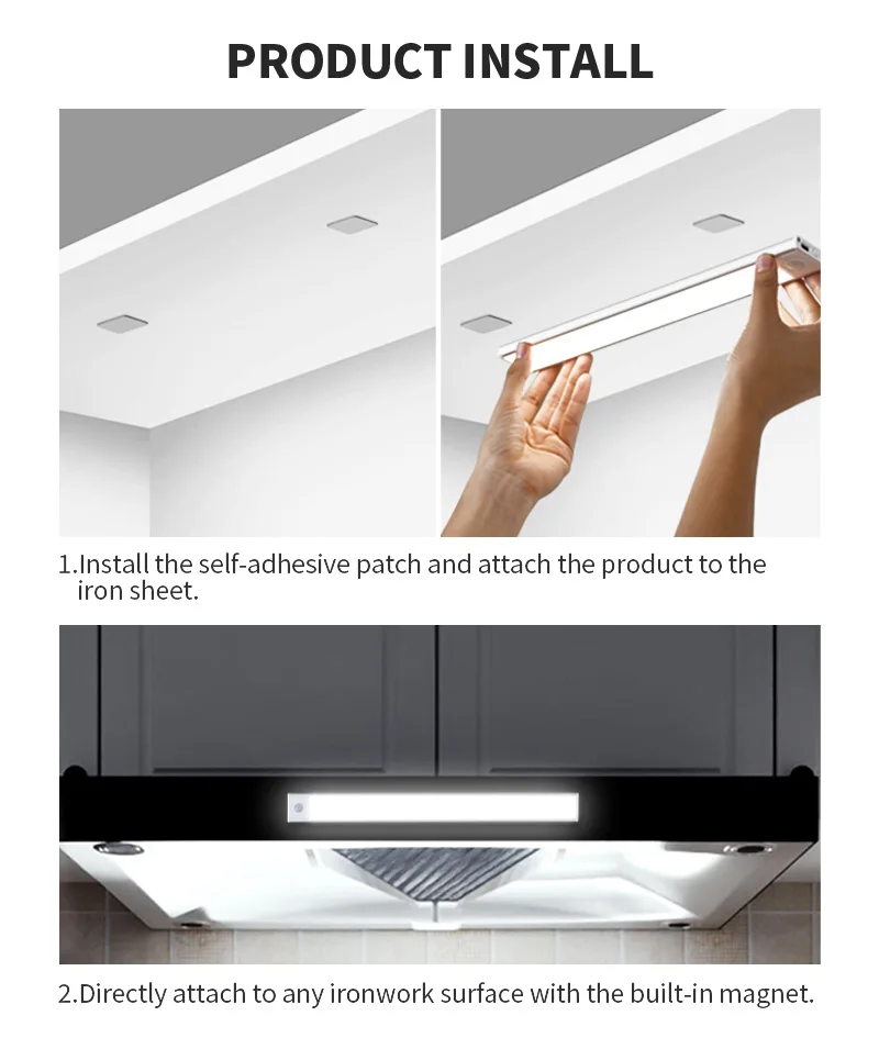 USB wardrobe kitchen magnetic lighting rechargeable battery closet lamp dimming motion sensor night LED under cabinet light