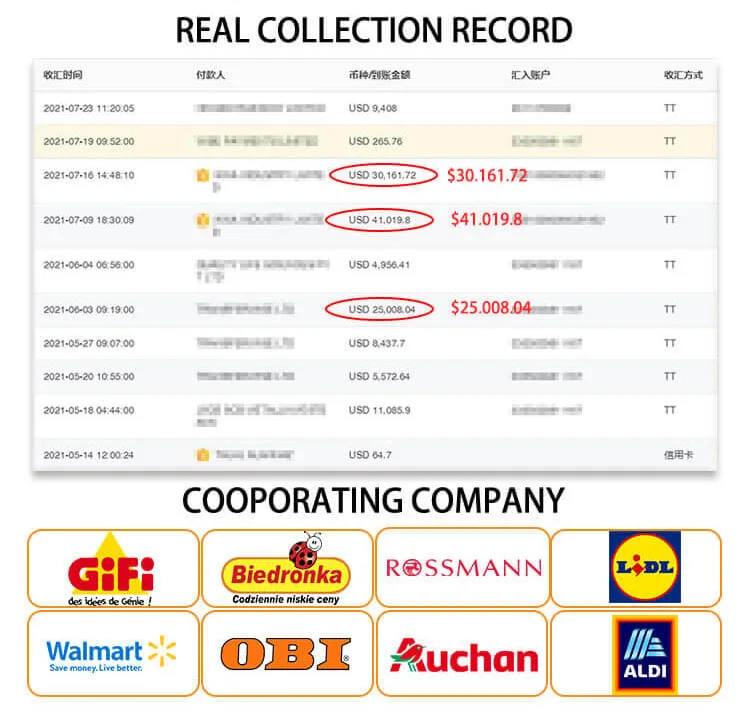 Alibaba order / T/T / Paypal / Credit Card