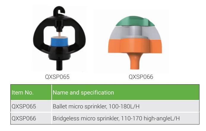 -Butterfly Micro Sprinkler is a kind of spraying widely used in agricultural irrigation, garden spraying. - The butterfly nozzle is named for its unique butterfly shape, which allows the spray to flow evenly and cover a wide area. - Emphasizes its precise flow control and spray distance for a variety of irrigation needs. - UV and chemical resistance, suitable for outdoor and various environmental conditions.